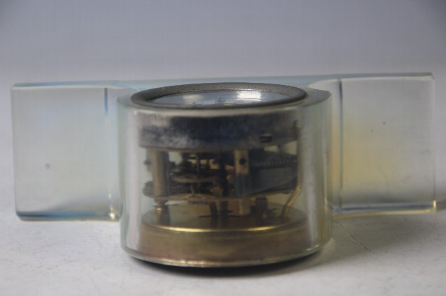 乳白色の美しいガラス。機械の部分はスケルトンになっています。