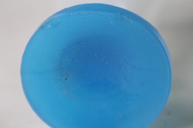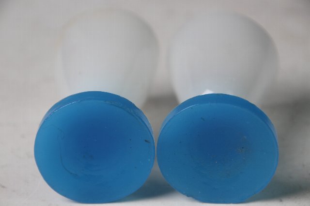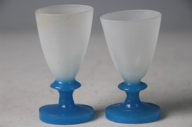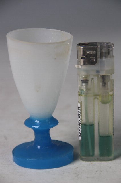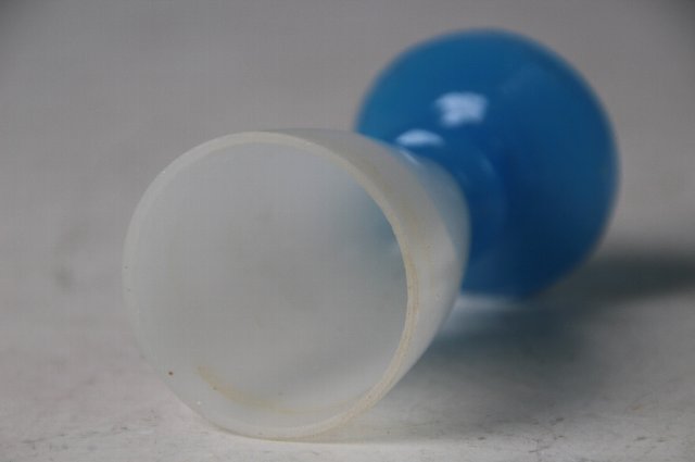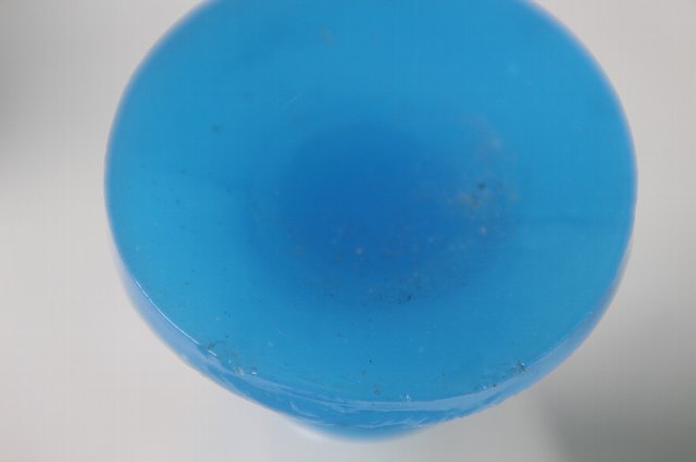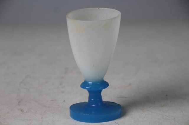 型成形の青い足に乳白の盃を乗せたもの。