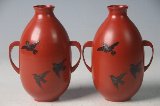 | U4661 朱塗雀図酒徳利 直径7cm 高さ13cm 昭和前期頃 一対 ¥10,000 |