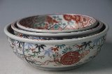 A4664 錦手龍鳳凰図三つ鉢 直径25.3cm 高さ11.2cm 明治の伊万里 3つ組 ¥13,000 |