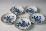 | A4665 染付紫陽花図中皿 直径14cm 高さ3.5cm 江戸中期の伊万里 5客セット ¥15,000 |