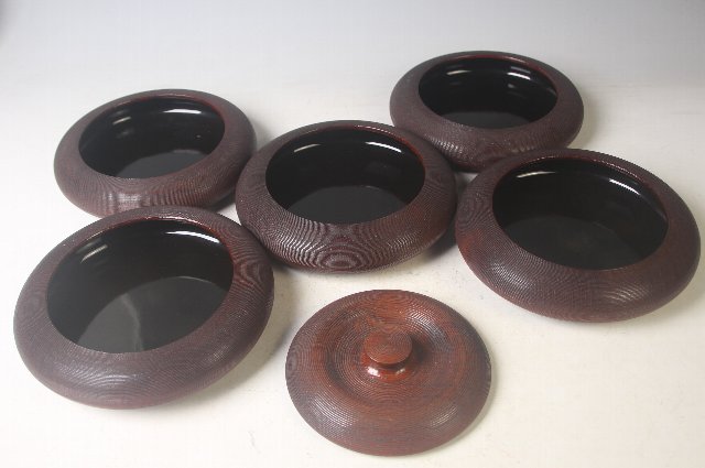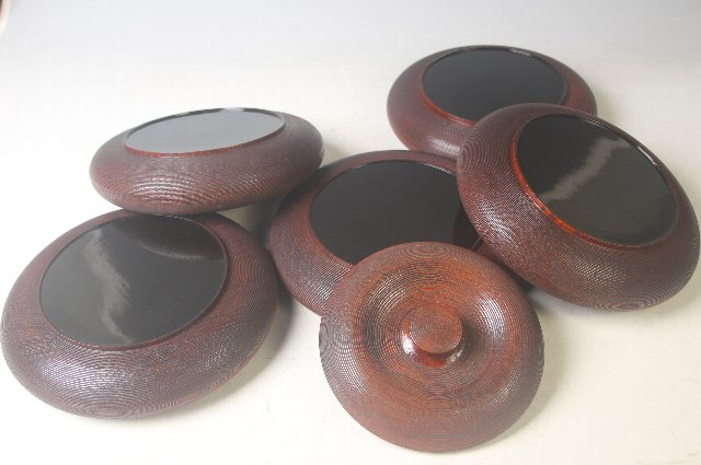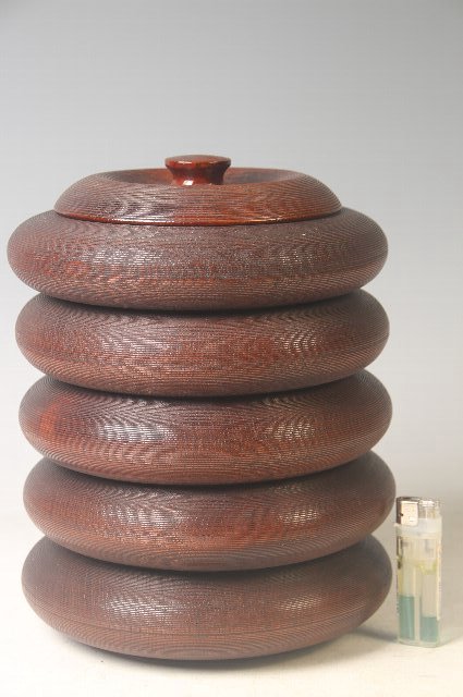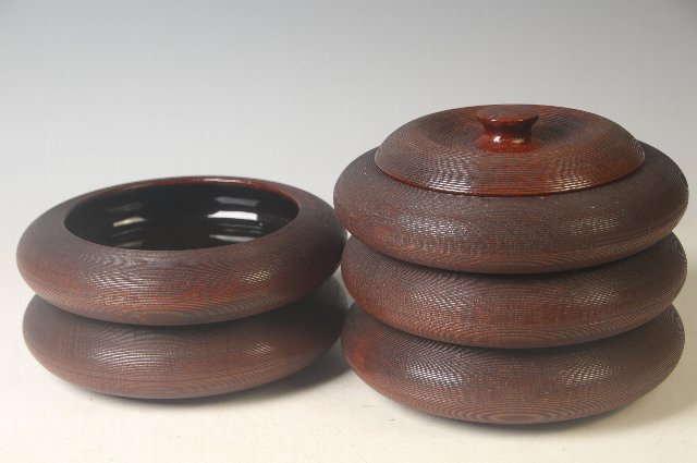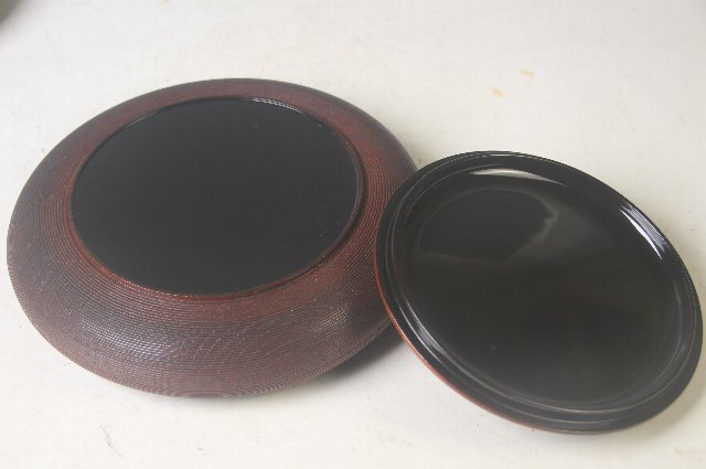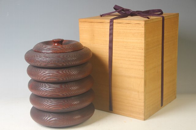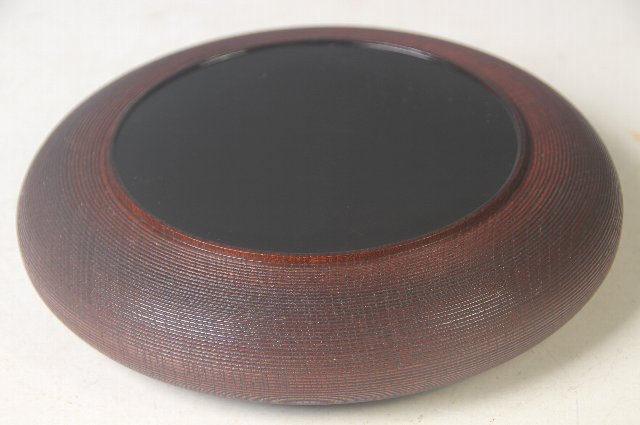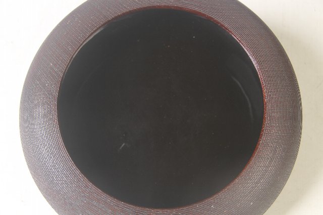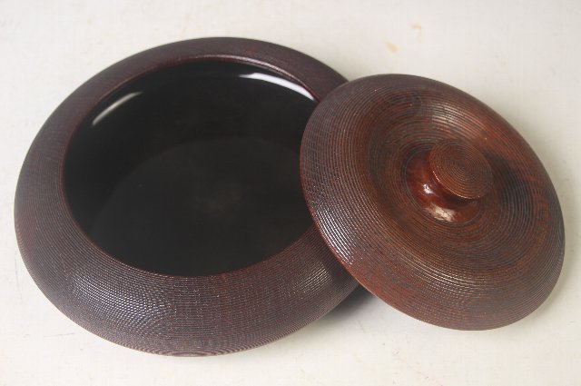 全体に轆轤で糸目模様が付けられた木地塗り。