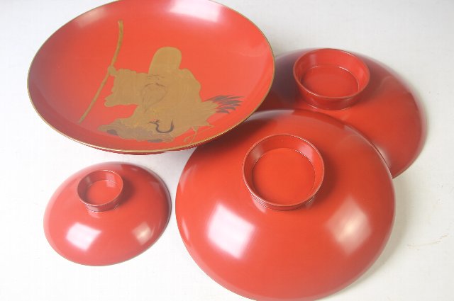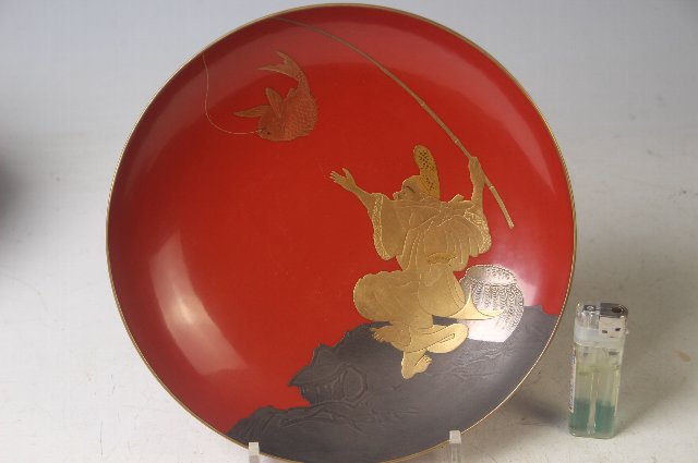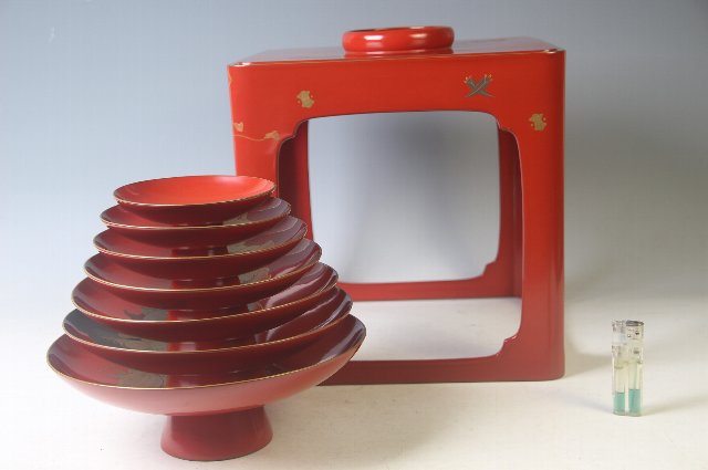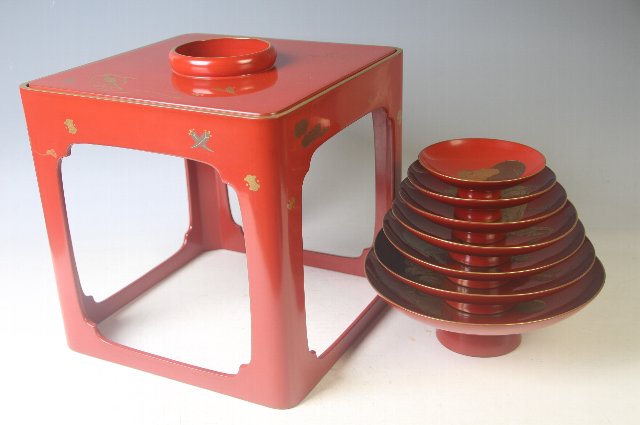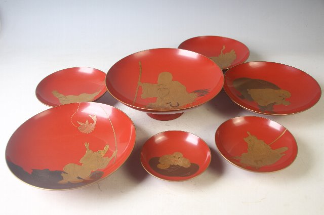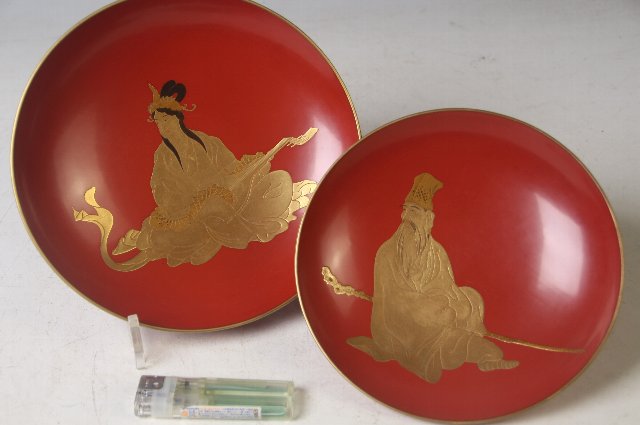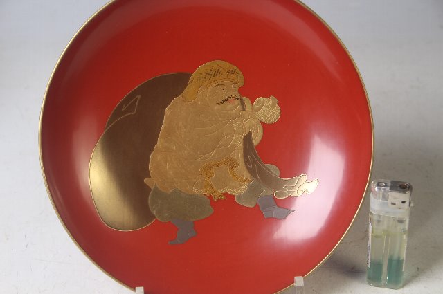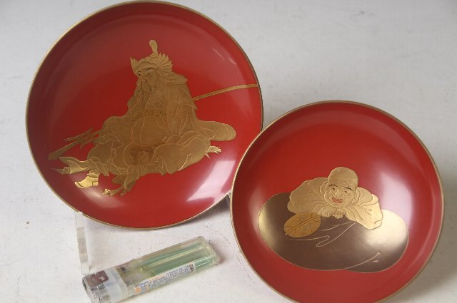 蒔絵で七福神を盃に、台には宝尽くしのおめでたい図。