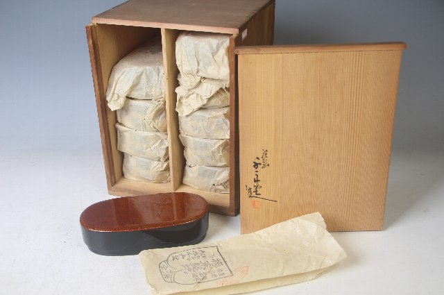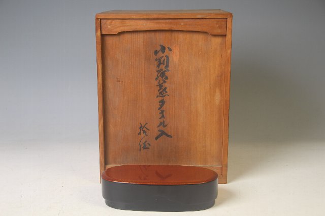 木箱には小判型蒸しタオル入れとなっており、本来はおしぼり入れだったものです。