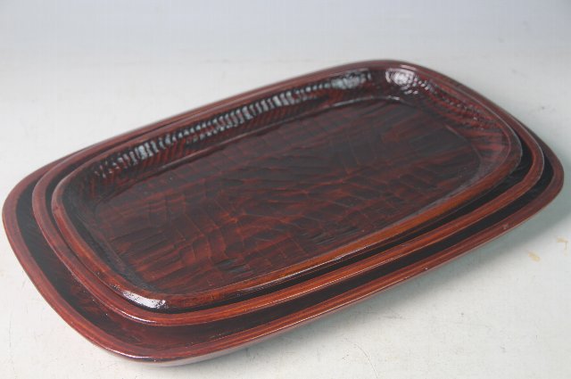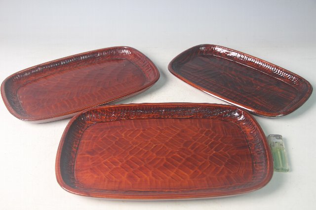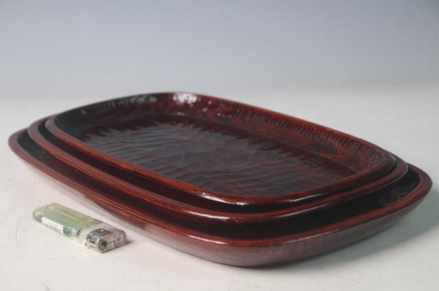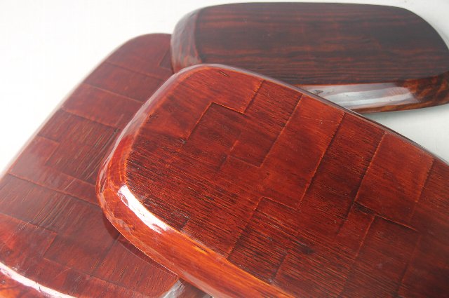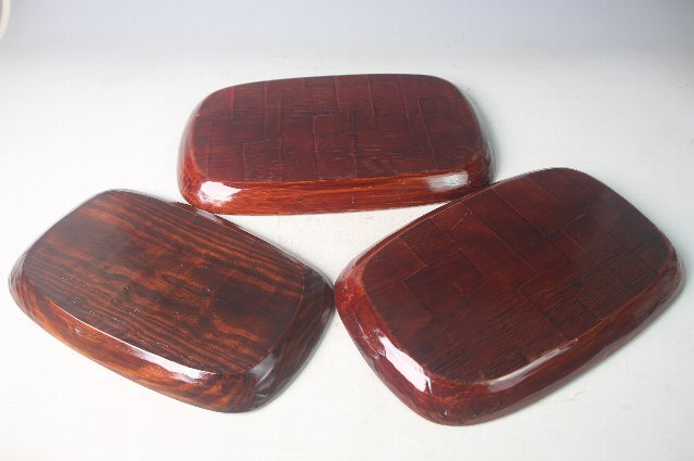 3枚入れ子になった鑿跡の付いた角盆。