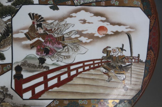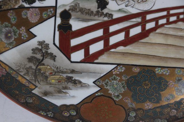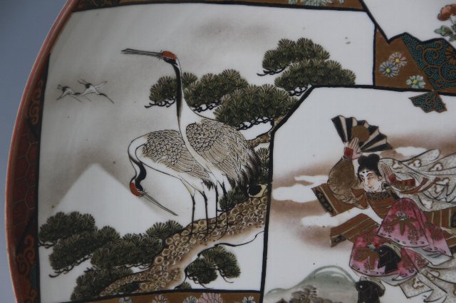 周りは菊の花が描かれそのバックにはびっしりと青粒で埋められています。