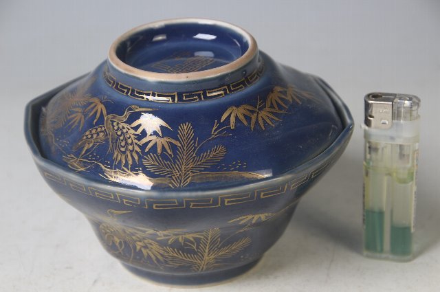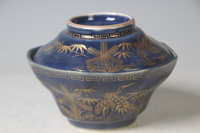 松竹と丹羽の鶴が描かれた蓋物。