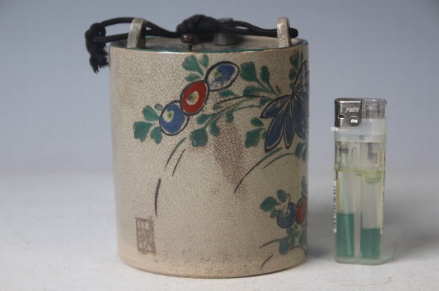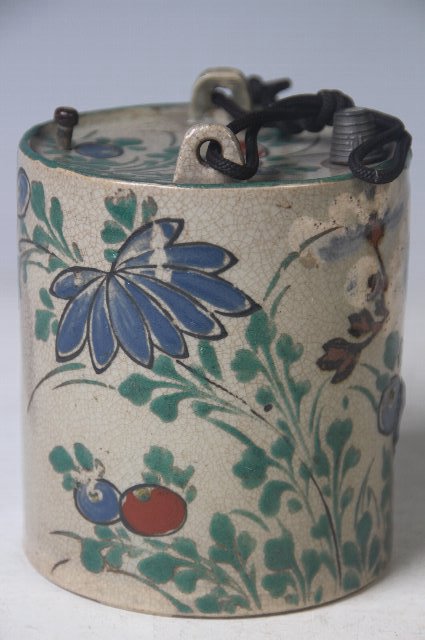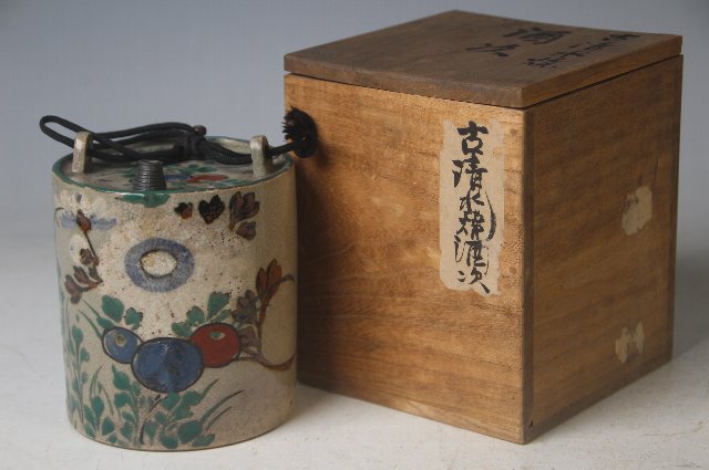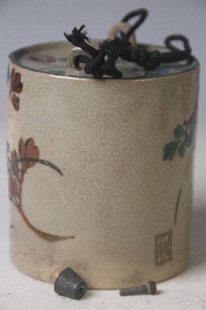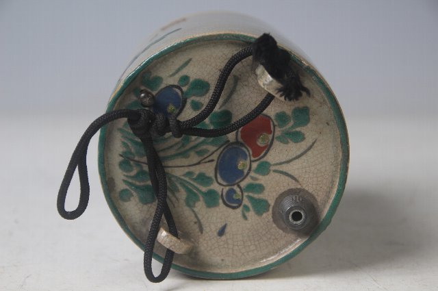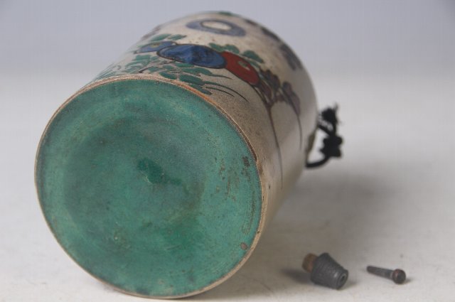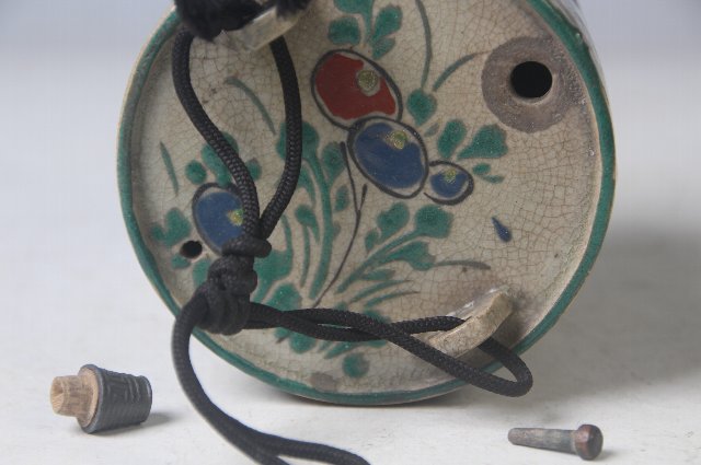 注ぎ口と空気穴に木の詰めが付いており、注ぎ口には金具が巻かれています。