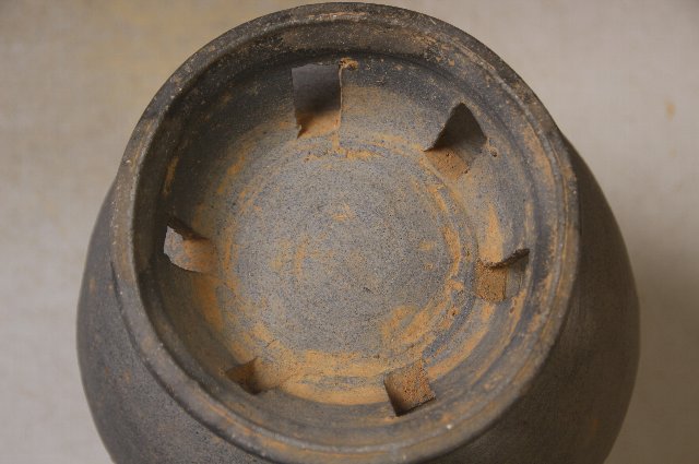 薄手の作りでカリッと固く焼き上がった壺。