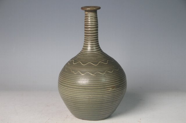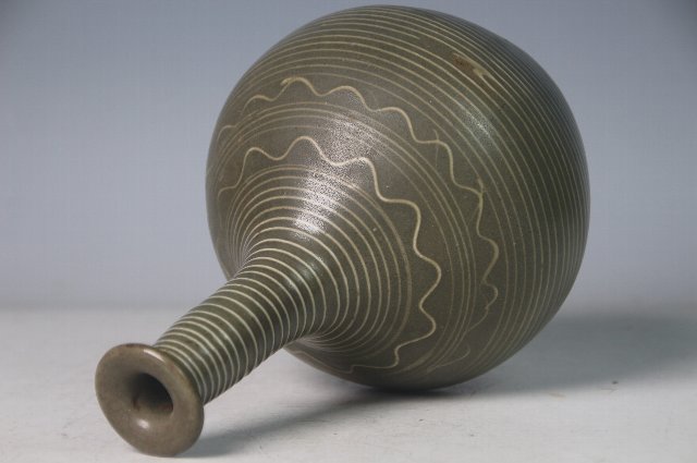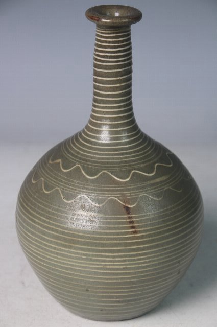 いっちんで輪線と波紋が描かれた徳利。
