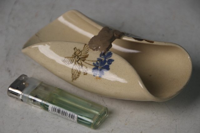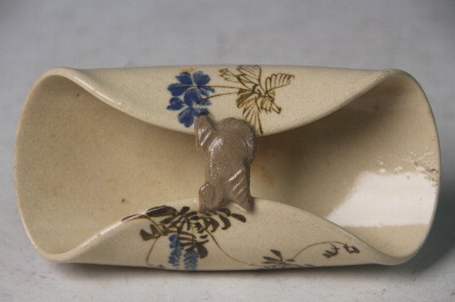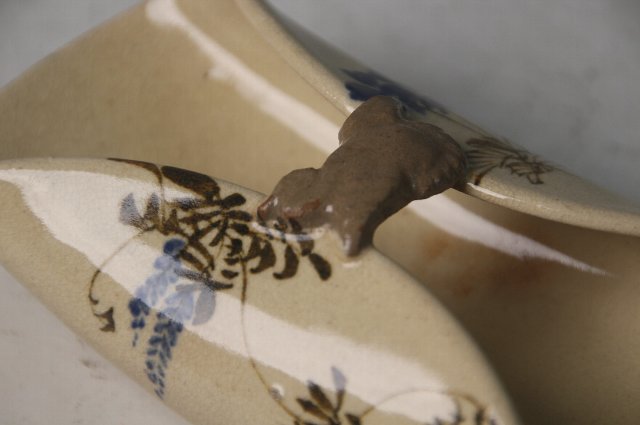 花が描かれ、中央の持ち手に鳥があしらわれています。
